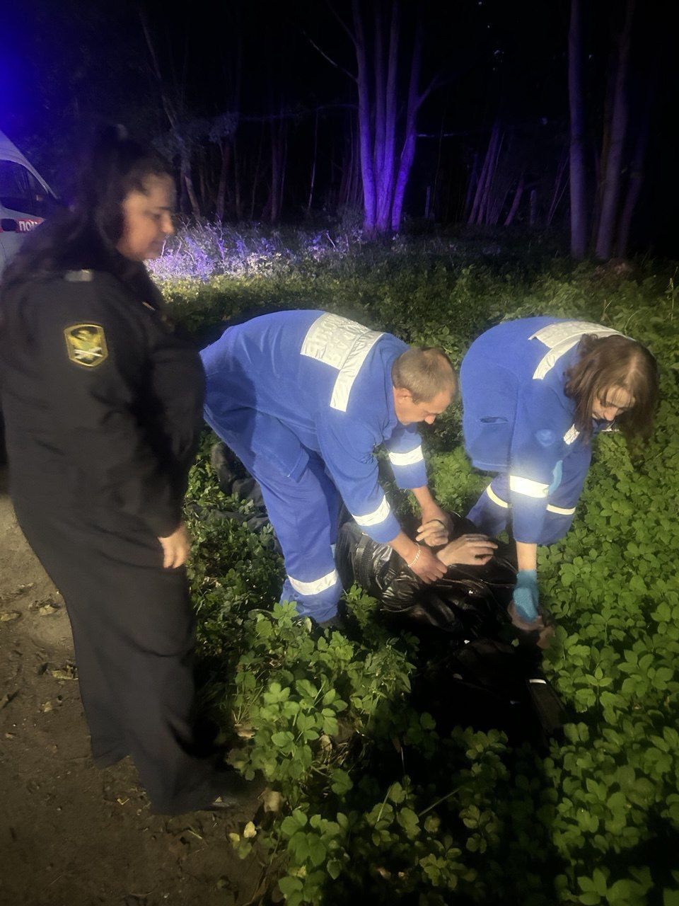 По информации ведомства, женщина возвращалась домой со службы вместе с дочерью. Они шли в магазин и заметили в кустах мужчину, лежащего без движения. Он не отвечал на вопросы, только слабо стонал.