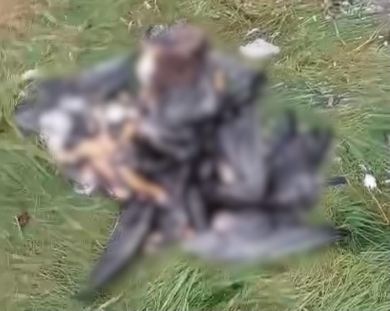 Всё произошло в пятницу, 17 октября, в посёлке Каменка. Во время прогулки с собаками в поле, недалеко от озёр, местный житель заметил останки птиц: кучу перьев, головы, крылья и внутренности.