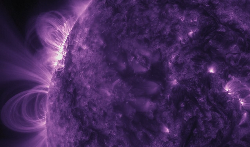 — В настоящее время на левом краю Солнца наблюдается выход к Земле двух крупных центров активности, видимых по большим магнитным петлям с высотой до 200-300 тысяч километров (при размере Земли около 13 тысяч километров). Наличие на обратной стороне Солнца больших центров активности прогнозировалось по сильным взрывам, которые наблюдались там на прошлой неделе и, в том числе, вызывали вопросы о судьбе межзвёздной кометы 3I/ATLAS, попавшей прямо под эти удары. Тем не менее, судя по последним данным, объект 3I/ATLAS уцелел, а вот центры активности теперь переходят на сторону, обращённую к Земле.