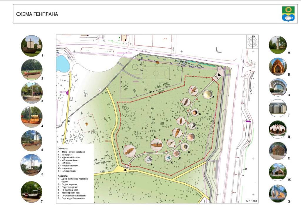 Во всем парке планируют создать единый стиль. Там также установят скамейки, урны, фонари и малые формы. Все это оформят в теме путешествий и разных континентов.