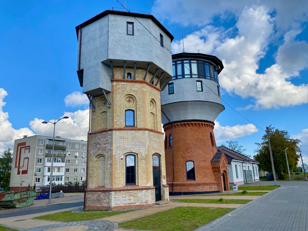 А если приехать в Гусев, представится возможность увидеть сразу две водонапорные башни — Восточную и Западную. Они находятся рядом с вокзалом. Одна башня построена в 1890 году, другая — в 1907 году. Возведены гидротехнические сооружения из красного кирпича. Высота башен около 15 метров, а объём резервуаров — 50 кубических метров.