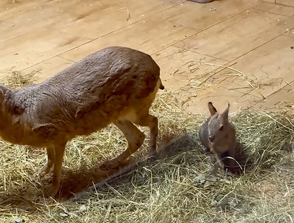 Патагонская мара стала второй раз за этот год мамой: её детёнышу примерно 10 дней.