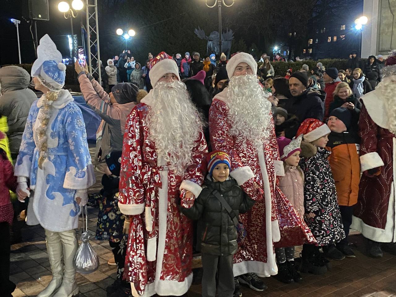 Зимние волшебники шествовали по пешеходной улице Победы от ЦКД «Парус» до площади Ленина, где торжественно зажгли главную новогоднюю ёлку муниципалитета.