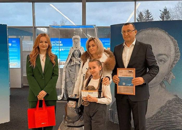 Девочку вместе с её мамой поздравили гендиректор Храброво Александр Корытный и представитель Nordwind Ольга Ваврищук. Дарине вручили памятные сувениры и сертификат на бесплатное обслуживание в бизнес‑зале аэропорта.