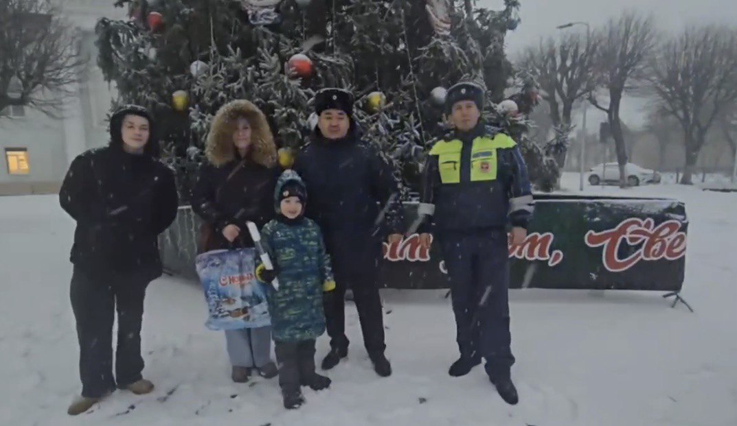 Автоинспекторы подарили ребенку сувениры с символикой ведомства, которые будут напоминать ему о новогоднем чуде.