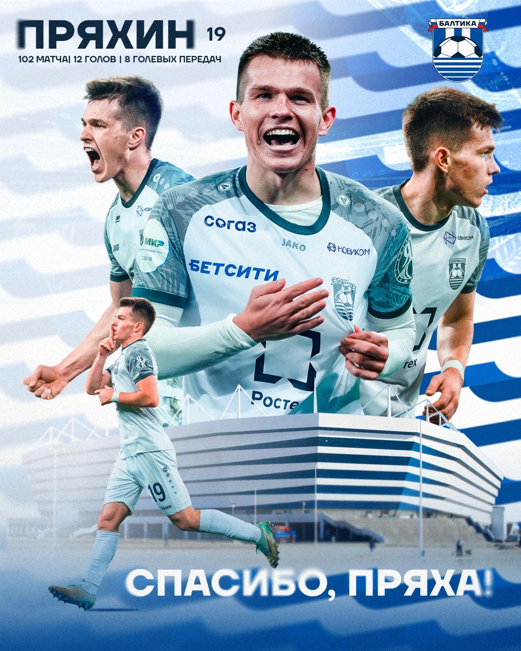 — Пряха, спасибо тебе за эти памятные 3,5 года! Удачи тебе в дальнейшей футбольной карьере! — прокомментировали в «Балтике».