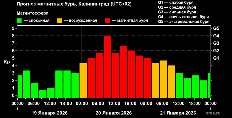 Вспышка геомагнитной активности вызвана облаком плазмы от Солнца. Самая мощная магнитная буря ожидается утром до 12 часов дня. Потом, как прогнозируют эксперты, она немного стихнет, но уже ближе к вечеру опять могут фиксироваться сильные возмущения геомагнитного фона.