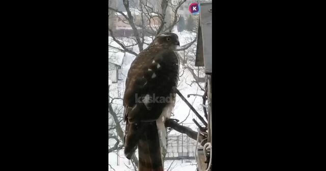 В Зеленоградске хищная птица повадилась к кормушке для мелких пернатых обитателей города. Она установлена на многоэтажке по Садовой улице. Вера Ивановна каждую зиму ставит за окно столовую для пернатых, в которой всегда свежее сало и семечки.