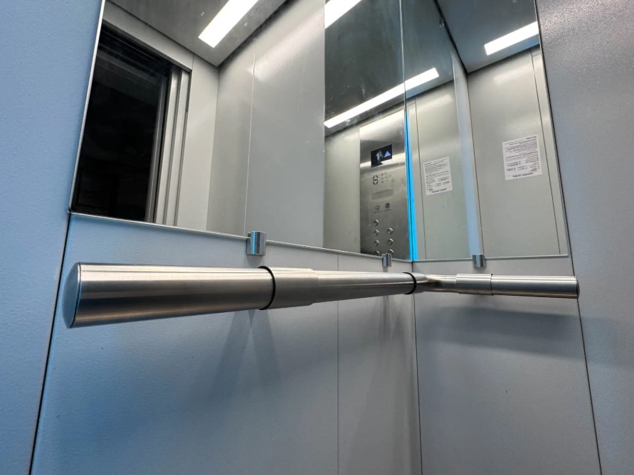 В обновлённых лифтах появился продлённый поручень — теперь он проходит вдоль смежной стены. Также добавлена мягкая подсветка, которая делает поездку комфортнее.