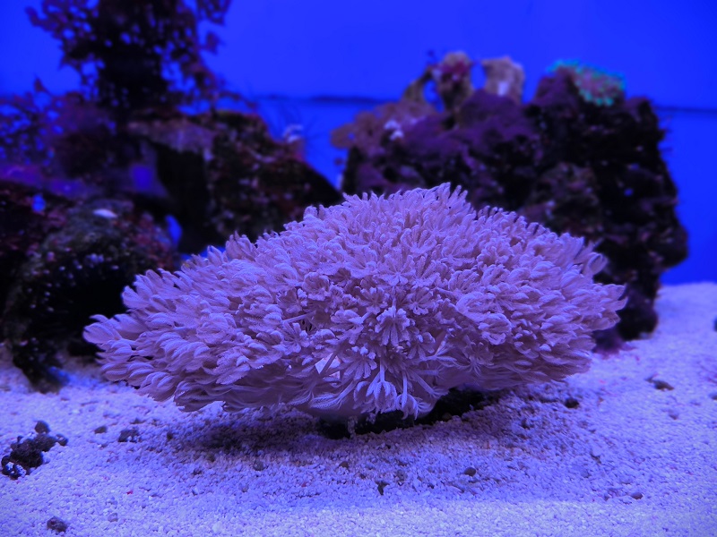 Также в аквариуме поселилась Ксения пульсирующая — мягкий коралл с уникальной способностью полипов ритмично сжиматься и разжиматься, что часто сравнивают с ритмичностью пульса: